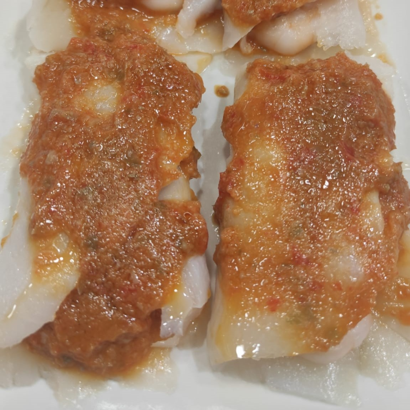 Rotllets de carpaccio de bacallà amb gambes i salsa vinagreta