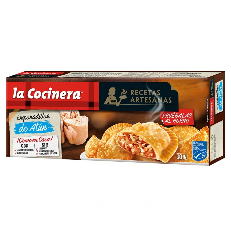 - Producto ultracongelado. Conservar a -18°C o temperaturas inferiores. Preparación: EN HORNO: 1- Calentar el horno a 230 ºC. 2- Pintar las empanadillas, sin descongelar, con huevo batido y ponerlas en la bandeja en la parte central del horno. 3- Calentarlas hasta que estén ligeramente doradas (aproximadamente 8 ' 10 minutos). EN SARTÉN: 1- Calentar abundante aceite en una sartén de tamaño mediano hasta que esté bien caliente. 2- Freír las empanadillas, sin descongelar, hasta que estén doradas (durante 3 ó 4 minutos). *Poner pocas unidades cada vez para evitar que el aceite se enfríe. EN FREIDORA: Calentar el aceite a 180 ºC de temperatura y freír las empanadillas, sin descongelar, durante 3 minutos.