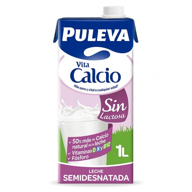 - Llet de vaca semidesnatada sense lactosa enriquida amb proteïnes, calci i vitamines A, D i K, tractada UHT i envasada en ampolla 1L
