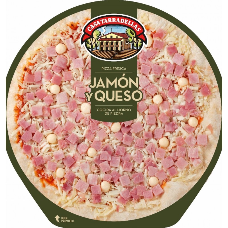 - Farina de blat. Formatge mozzarella (22%). Pernil (20%). aigua, Tomàquet. oli de gira-sol, sal, dextrosa, lactosa. Estabilitzants (trifosfat pentasòdic, carragenat). Aroma. Llevat. espècies, Orenga. antioxidant (ascorbat sòdic), àcid cítric. citrat trisòdic. conservador (nitrit sòdic)